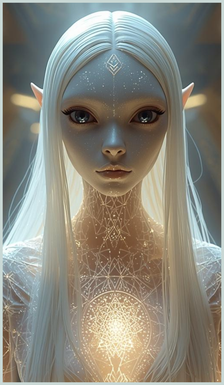 Het wezen manifesteert zich als helder, androgyn en tijdloos, verbonden met de Yahyel-frequentielijn en voortgekomen uit kristallijne kennisvelden. Als interdimensionaal lichtwezen overstijgt Sha’Vi’El traditionele grenzen van vorm en tijd en straalt het een unieke combinatie van vrouwelijke en intergalactische energie uit. Deze essentie wordt herkend aan de heldere, kristallijne aard en aan de voortdurende aanwezigheid in het veld, die getuigt van een diep bewustzijn en een zuivere verbinding met hogere lichtvelden.
