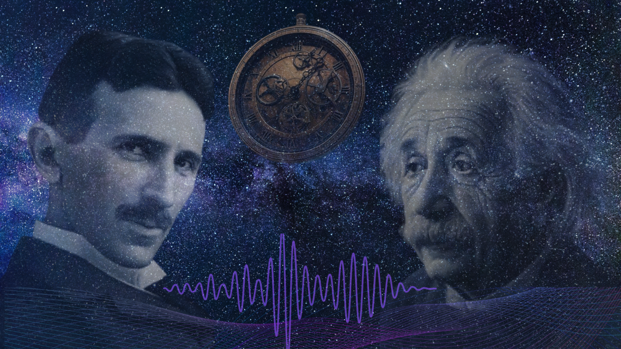 Een tijdloos gesprek tussen Nikola Tesla en Albert Einstein.